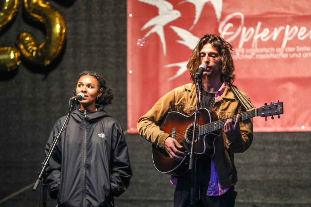 Eine Überraschungsperformance von Danger Dan setzte den Höhepunkt der Feierlichkeiten. Seine musikalische Darbietung gemischt mit konkreten politischen Kampfansagen zeigt, wie vielfältig Solidarität und Aktivismus sein können.