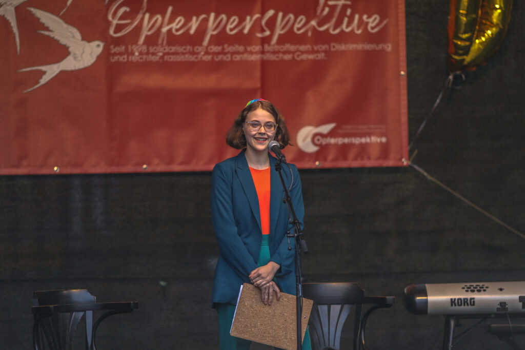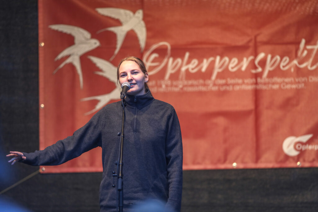 In einigen Orten Brandenburgs haben sich inzwischen Gedenkinitiativen gegründet. Anuscha Zbikowski von der Gedenkinitiative Emil Wendland präsentierte ein bewegendes Spoken Word, das die Erinnerung an die Todesopfer rechter Gewalt in Brandenburg bewahrte:
