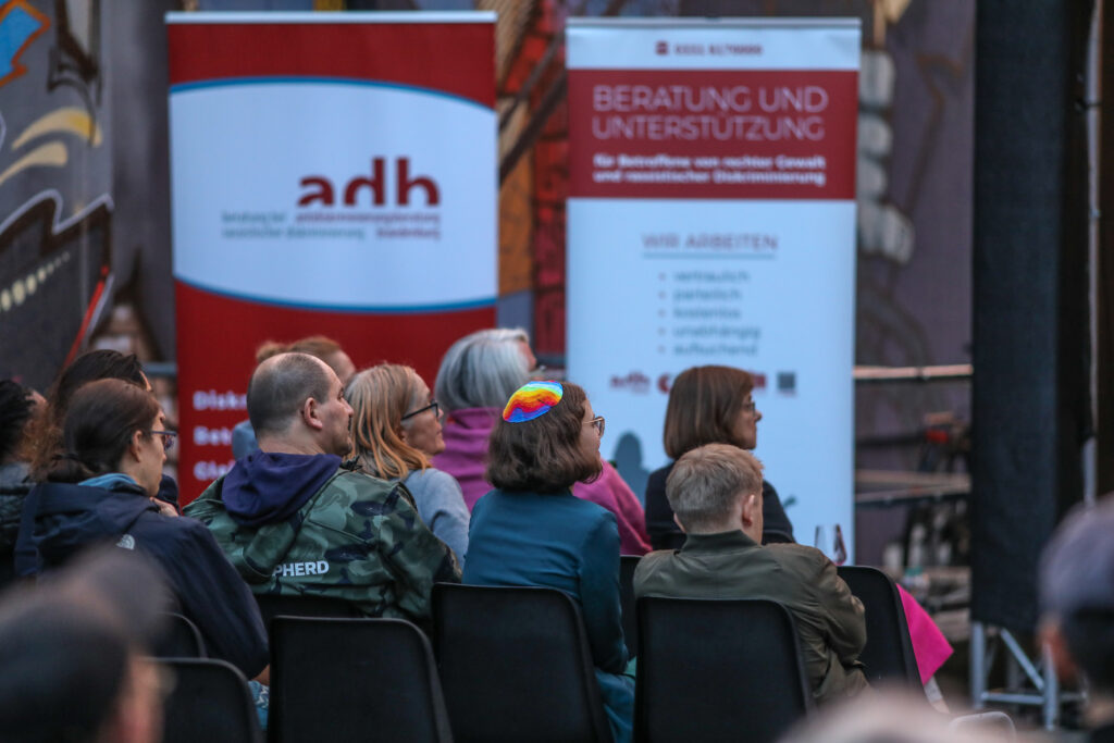 Künstlerische Elemente wurden ebenfalls in das Veranstaltungsprogramm integriert, darunter Musik von Bookwood and Friend, ein Poetry Slam von Tanya Raab sowie der Gedenkinitiative Emil Wendland.