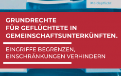 Die so entstandene Broschüre “Grundrechte für Geflüchtete in Gemeinschaftsunterkünften: Eingriffe begrenzen, Einschränkungen verhindern” wendet sich an (potentiell) betroffene Bewohner*innen von Gemeinschaftsunterkünften, um sie für die Einforderung ihrer Grundrechte zu stärken, und ebenso an Betreiber*innen von Gemeinschaftsunterkünften, deren Personal und an die für die Unterbringung von Geflüchteten politisch Verantwortlichen, die vom Grundgesetz her verpflichtet sind, die Grundrechte der im Heimen untergebrachten Menschen zu gewährleisten.