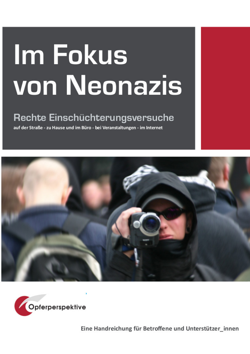 Rechte Einschüchterungsversuche auf der Straße – zu Hause und im Büro – bei Veranstaltungen – im Internet. Eine Handreichung für Betroffene und Unterstützer_innen .