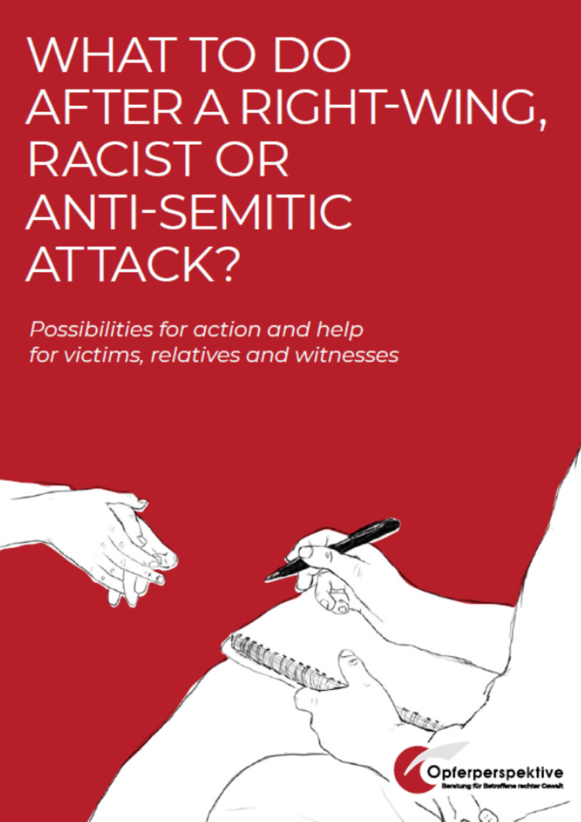 This guide is aimed at people who have experienced right-wing, racist or anti-Semitic violence, as well as their relatives, friends and witnesses of an attack.